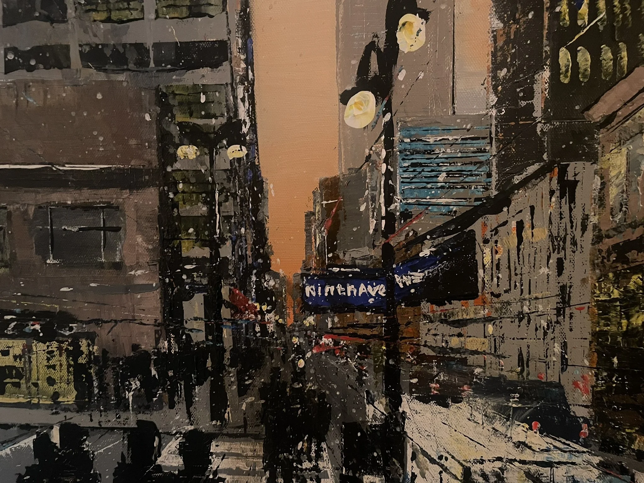 This piece uses tonal contrasts to convey the sense of distance and an impressionistic styles to represent movement.
