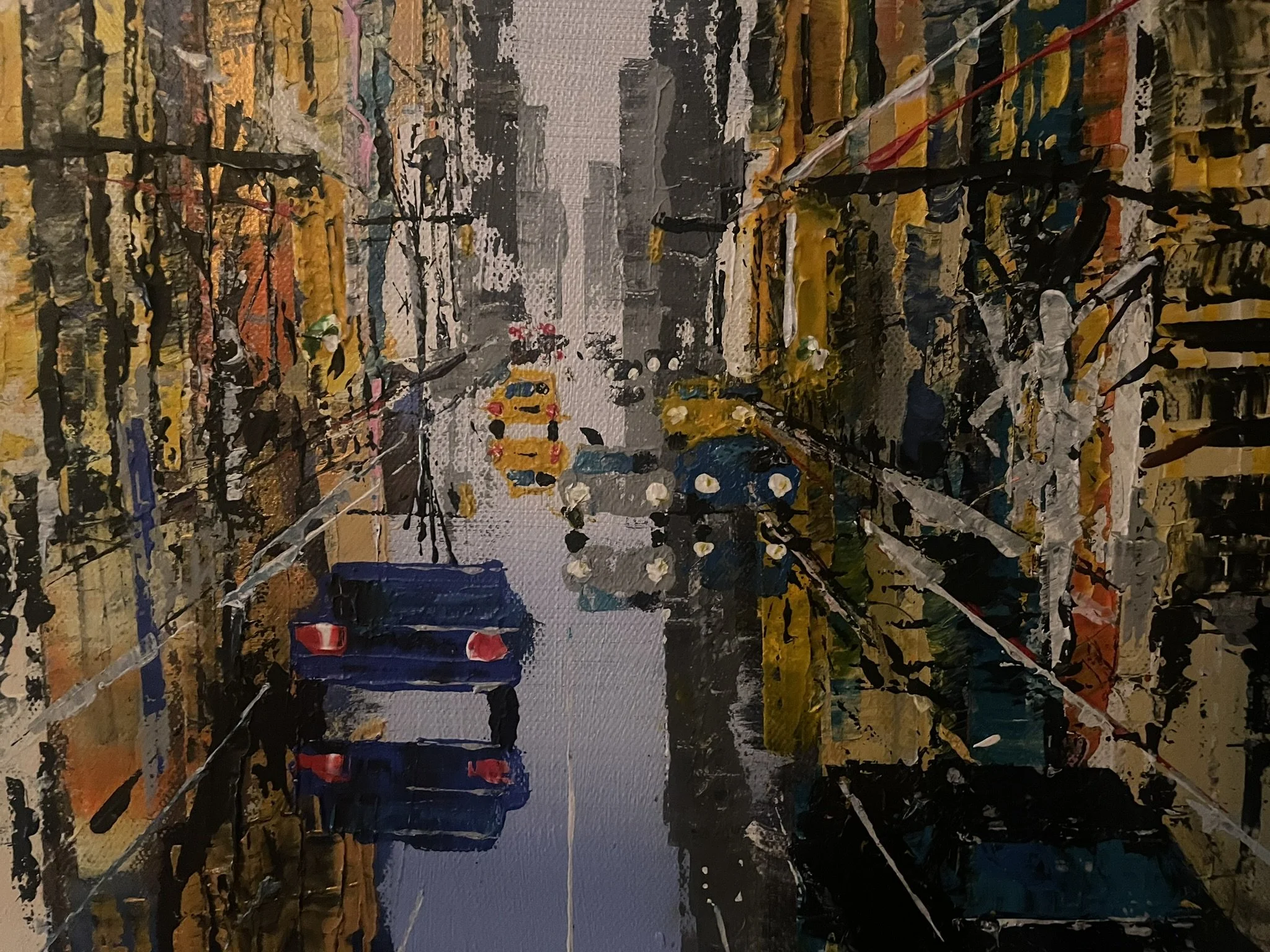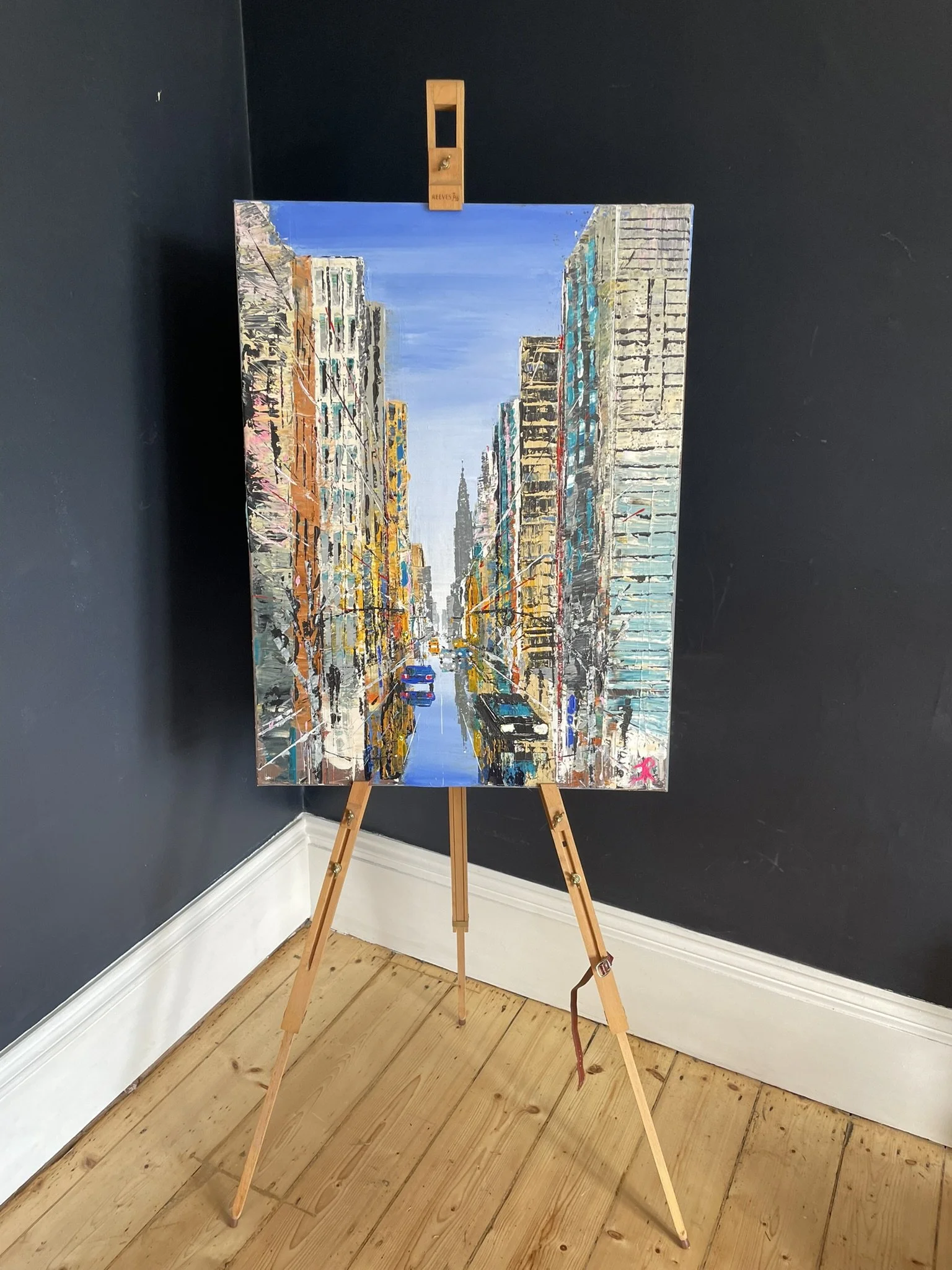 This composition uses vivid colours to represent the energy and dynamism of New York.